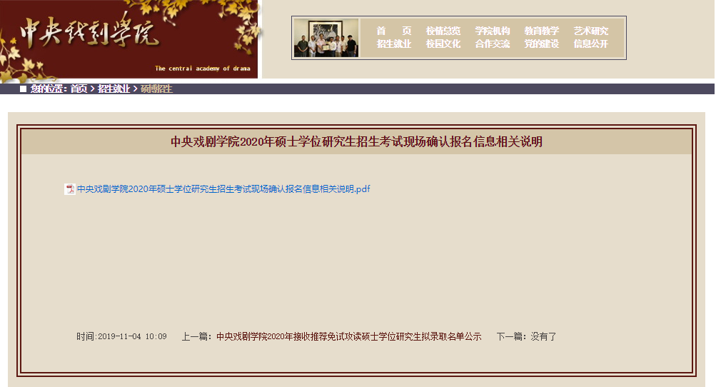 中央戲劇學院2020考研現場確認時間:11月8日至11月10日另附現場確認所需材料