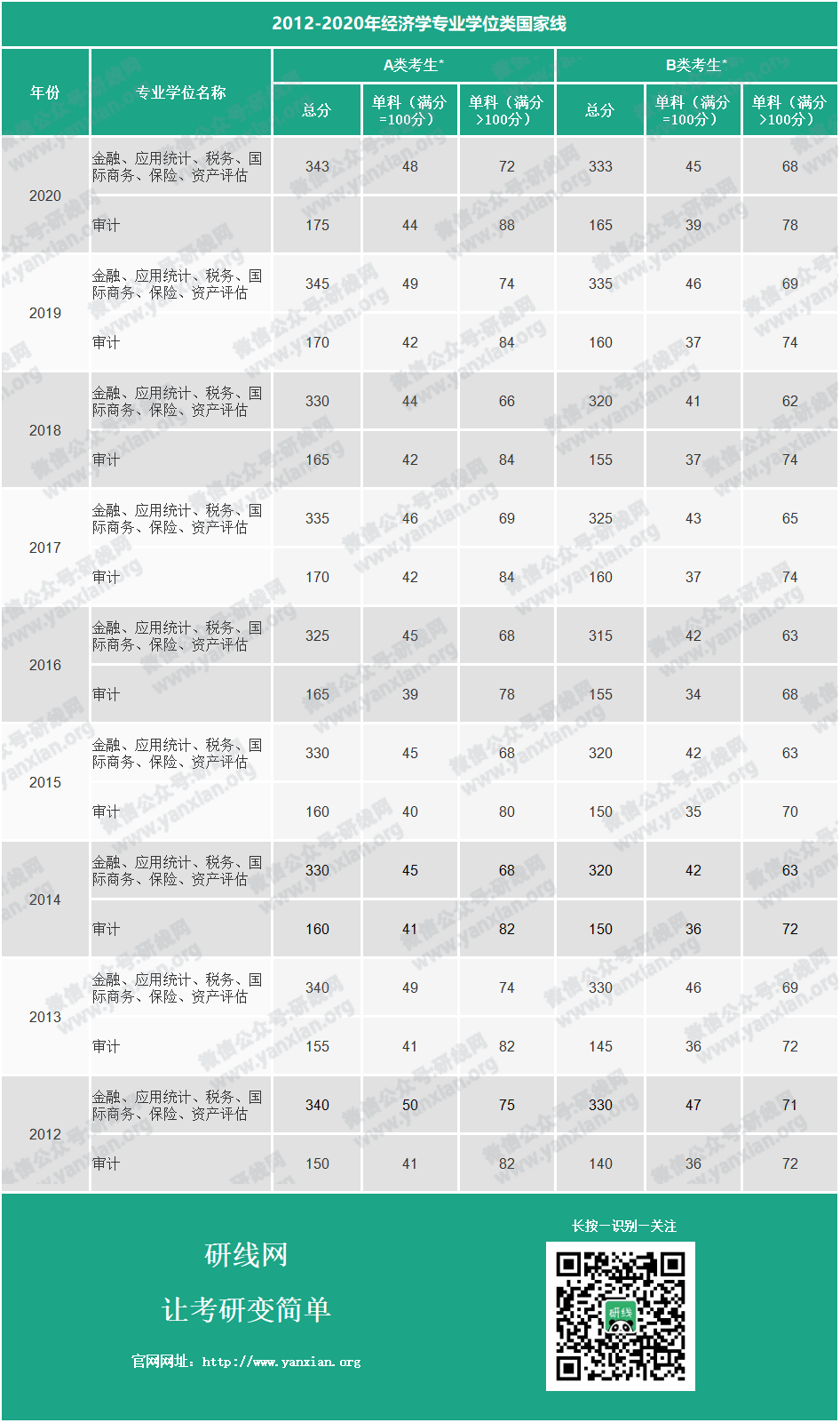 經濟學的考試科目一般為政治、英語、數學和專業課,具體考試初試科目查看報考學校公布的碩士專業目錄即可了解。分數構成為政治滿分100分,英語滿分100分,數學滿分150分,專業課滿分150分,總分為500分。