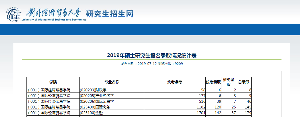 以上就是“對外經濟貿易大學2019年碩士研究生報名錄取情況統計表”的全部內容!祝你考研成功!