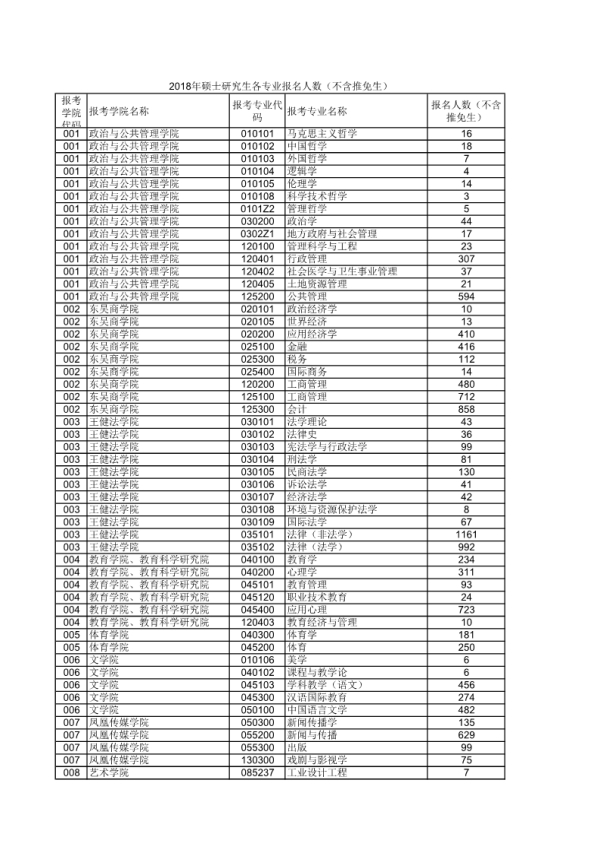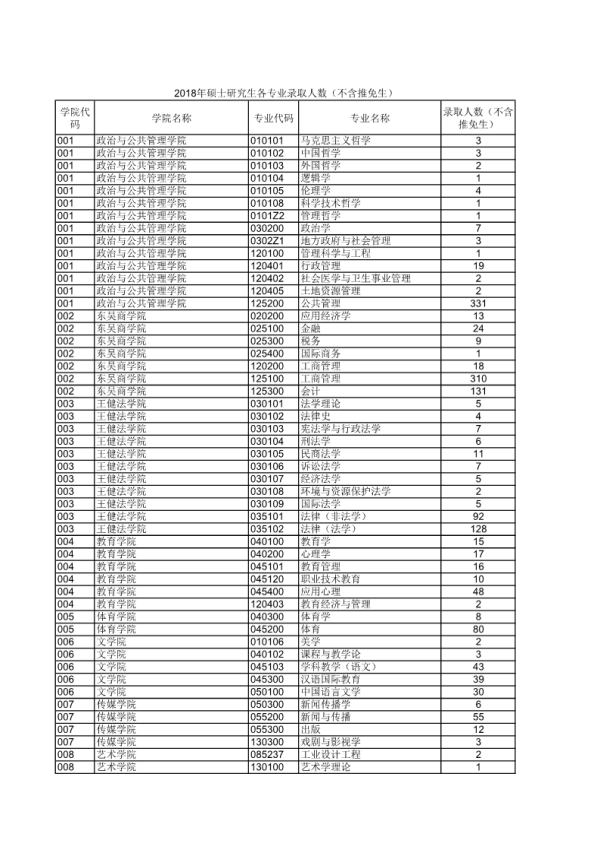 蘇州大學2018碩士研究生各專業報名錄取人數(不含推免)