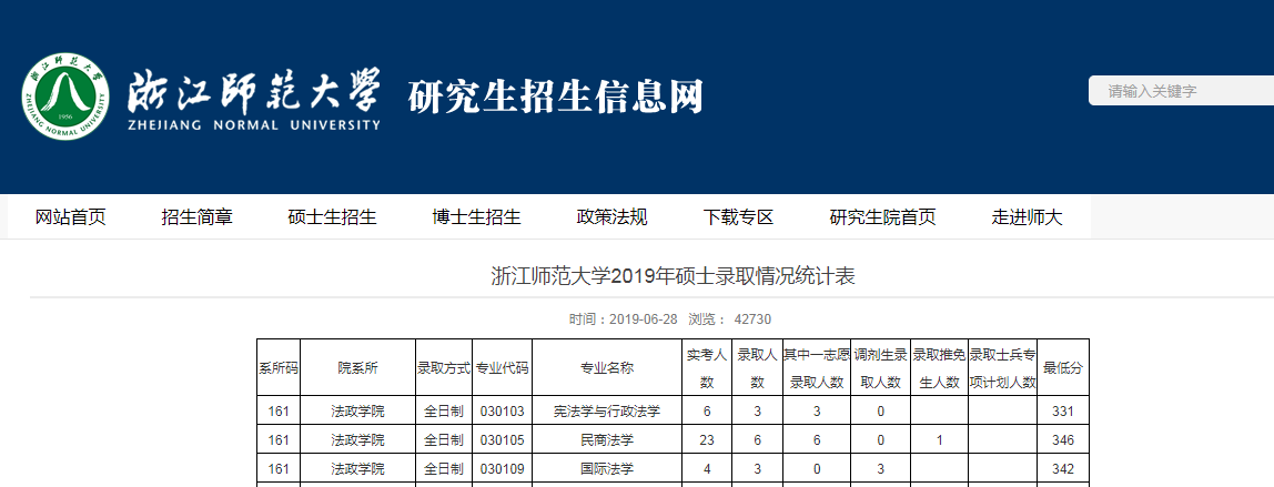 【點(diǎn)擊查看】浙江師范大學(xué)2019年碩士錄取情況統(tǒng)計(jì)表