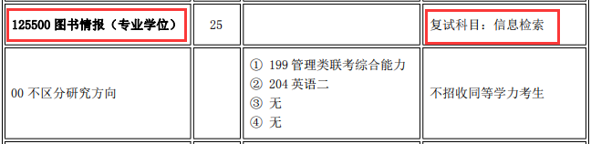 注:圖書情報專業2021年不招收同等學力考生