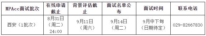 西安交通大學管理學院MPAcc中心將組織專家組對考生申請材料進行評審,擇優給予符合條件申請人提前批面試資格,發布面試名單。面試資格主要根據申請人的教育背景、工作經歷、榮譽獎勵等進行綜合評價。