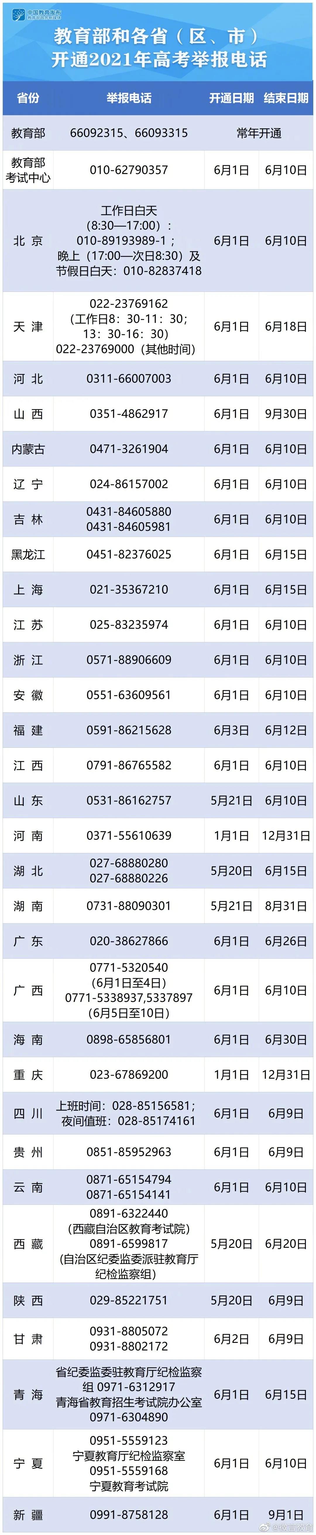 4.日前,教育部以及全國各?。▍^、市)教育行政部門和招生考試機構開通2021年高考舉報電話。