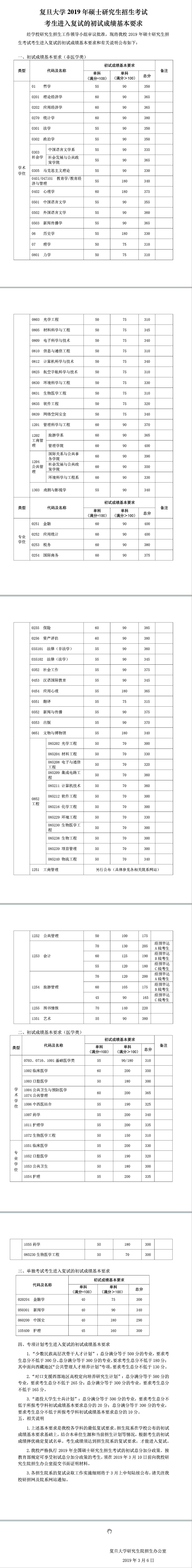 2019年復(fù)旦大學(xué)自主劃線初試成績(jī)