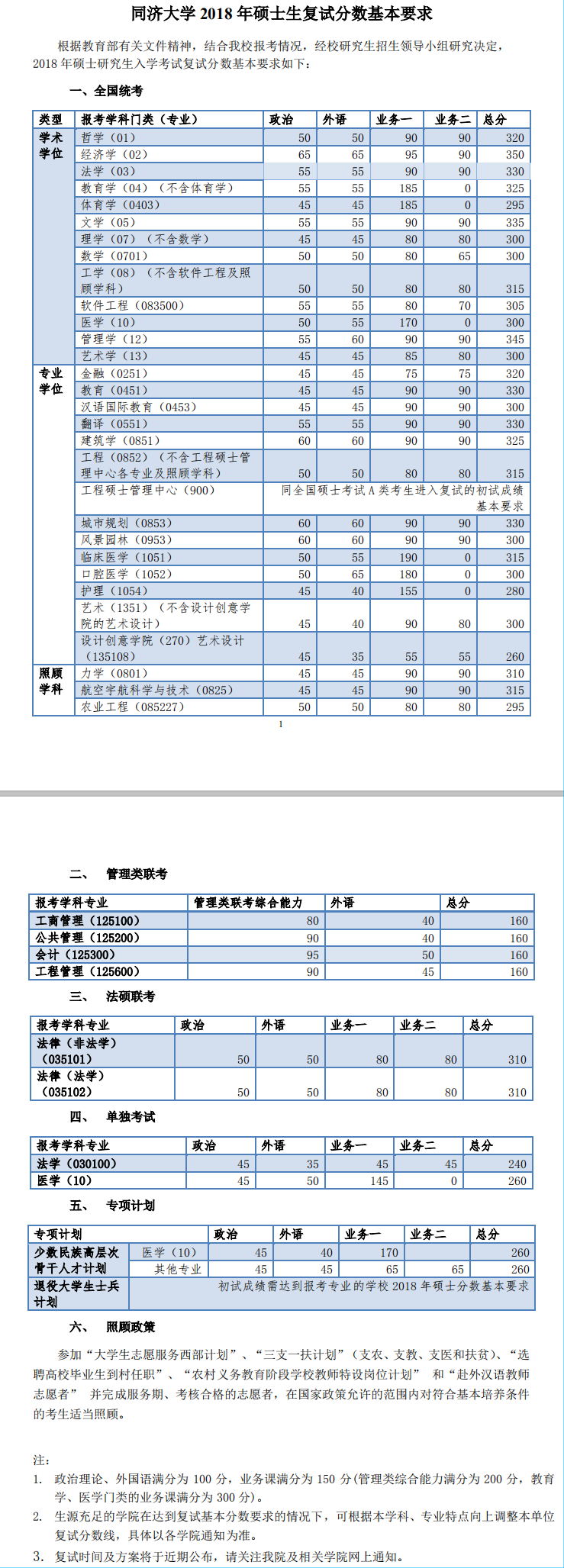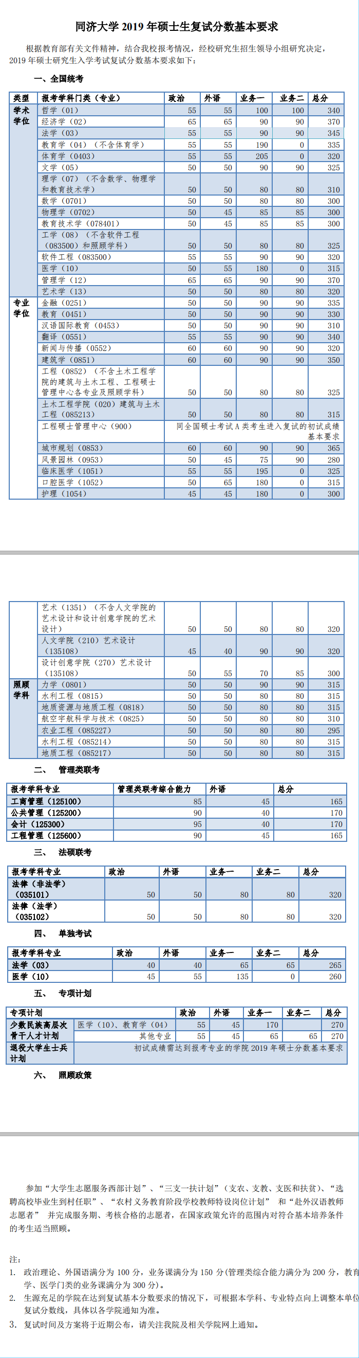 同全國碩士考試 A 類考生進入復(fù)試的初試成績基本要求 | ||||
