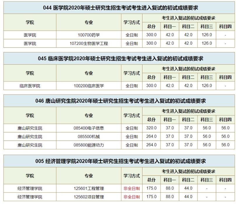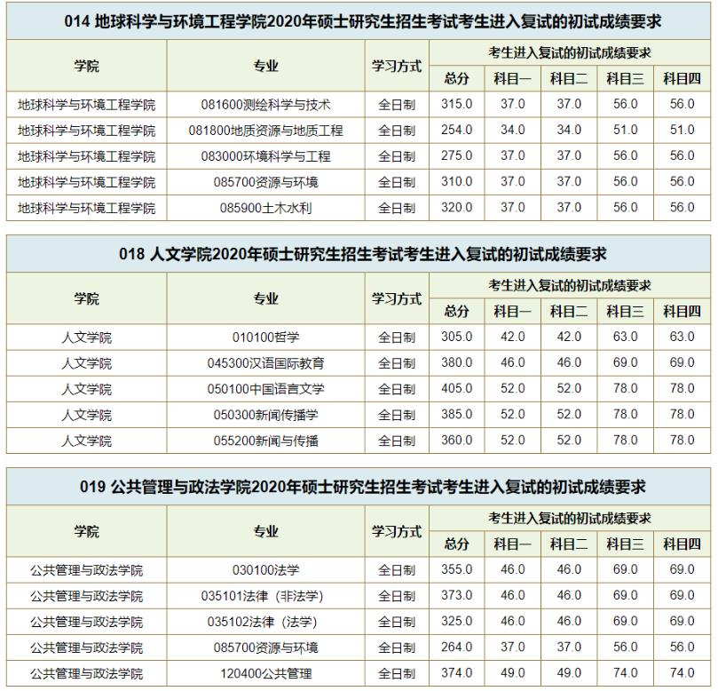 根據(jù)教育部有關(guān)文件精神,結(jié)合我校實(shí)際情況,經(jīng)學(xué)校和各招生單位研究生招生工作領(lǐng)導(dǎo)小組審定,我校2020年碩士研究生招生考試各專業(yè)考生進(jìn)入復(fù)試的初試成績(jī)要求如下表(陸續(xù)更新),請(qǐng)關(guān)注本網(wǎng)站發(fā)布的最新信息。