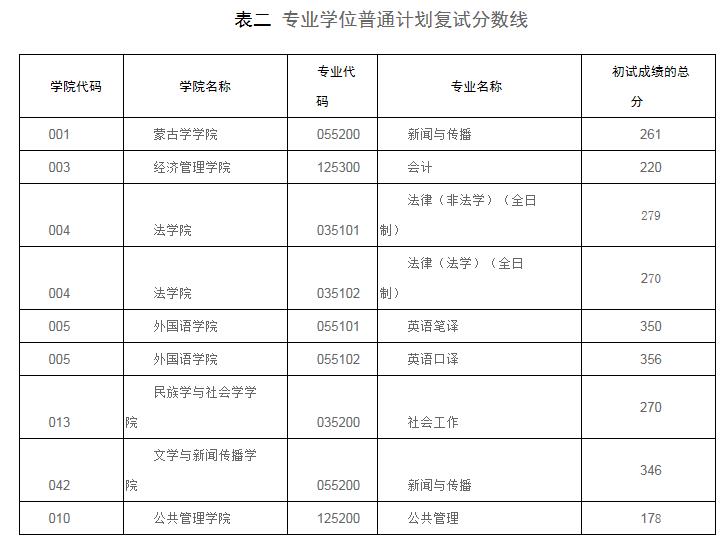 分數線。內蒙古大學已經公布2020年碩士研究生入學考試復試基本
