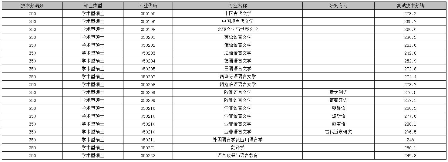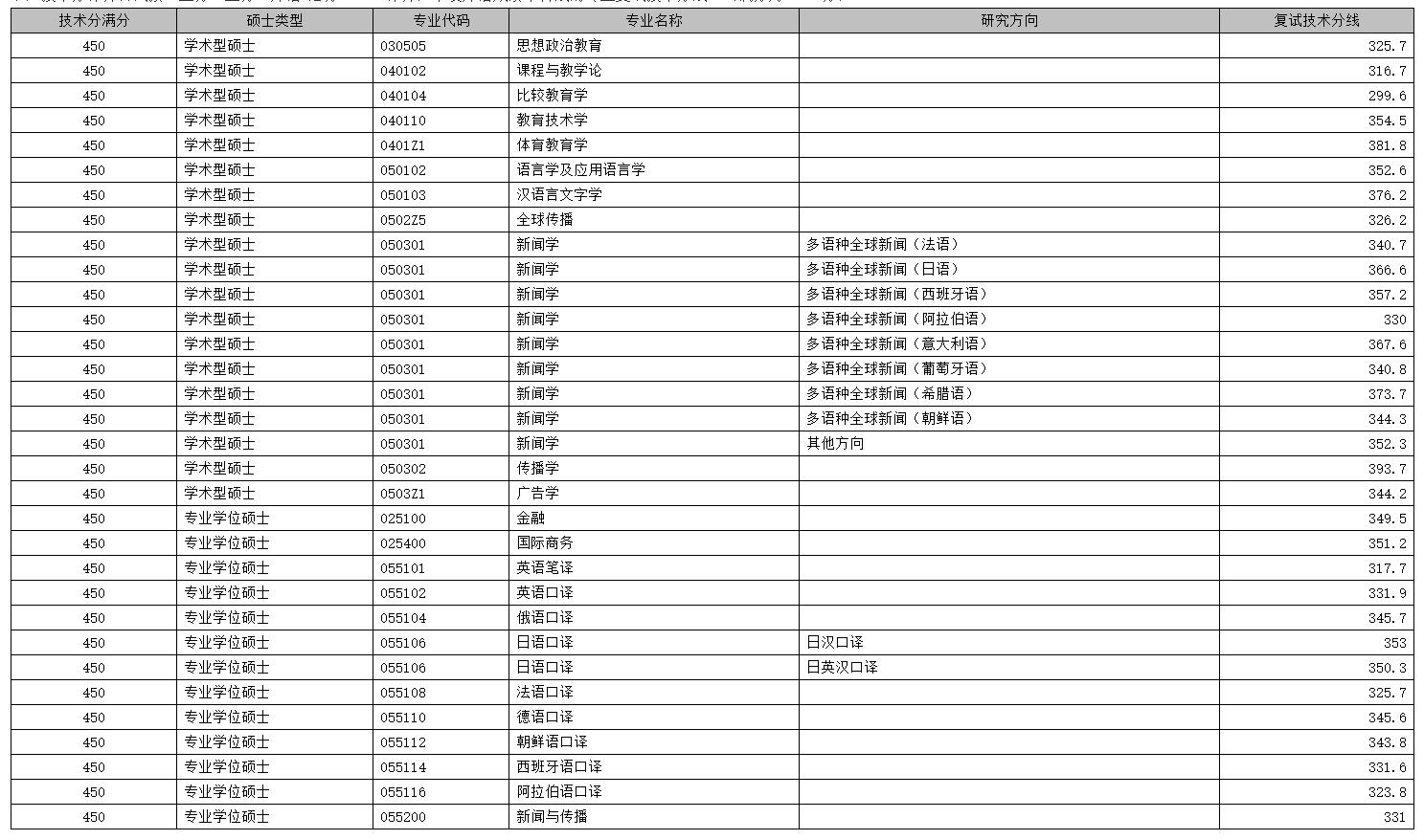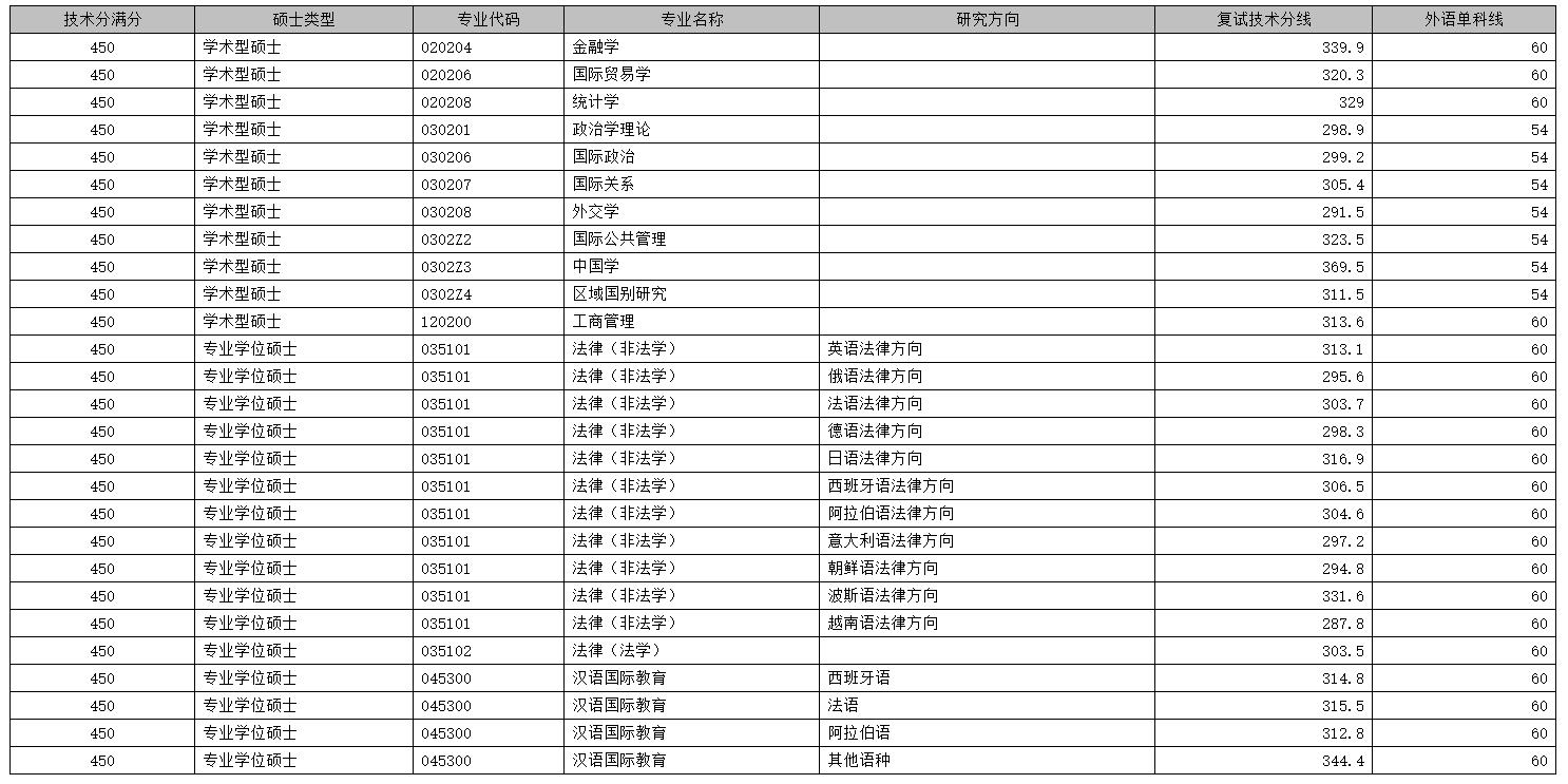 (3) 技術分計算公式按“業務1+業務2+外語+總分*10%”計算,不設外語成績單科線的專業復試技術分線:(滿分為 450分)
