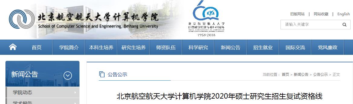 根據(jù)2020年北京航空航天大學(xué)計算機學(xué)院碩士研究生初試成績統(tǒng)計結(jié)果和各專業(yè)擬招生計劃,經(jīng)學(xué)院招生工作領(lǐng)導(dǎo)小組討論決定,我院2020年碩士研究生招生復(fù)試資格線如下: