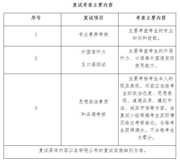 2.復試主要包括三項內容,即專業素養考核、外國語聽力及口語測試、思想政治素質和品德考核。同時,通過考生大學學習成績單、畢業論文、科研成果、專家推薦信等補充材料,加強對考生既往學業、一貫表現、科研能力、綜合素質和思想品德等情況的全面考查。