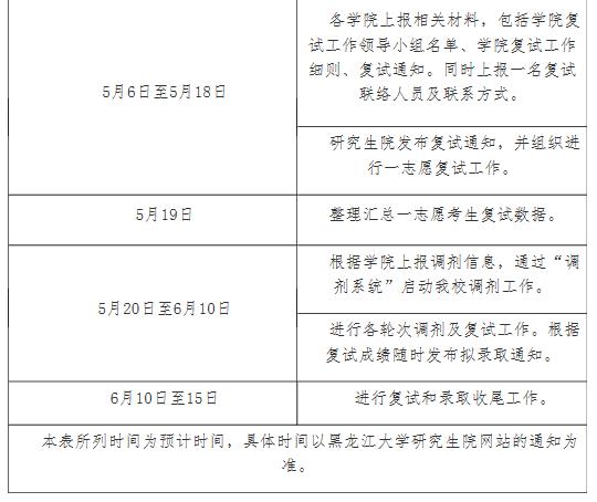 根據教育部和黑龍江省招生考試委員會關于研究生招生考試時間安排,我校初步確定于5月9日至5月18日進行一志愿考生復試,5月20日至6月10日進行調劑考生復試。