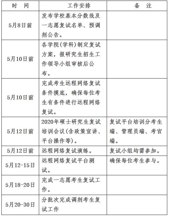 復試具體時間與流程見各學院復試工作方案。學校整體安排如下: