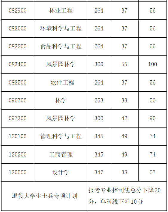 以上就是有關“2020考研分數線:中南林業科技大學2020年碩士研究生招生復試分數線”的全部內容了,進入復試的同學一定要好好準備,在國家線徘徊的同學抓緊準備調劑了!
