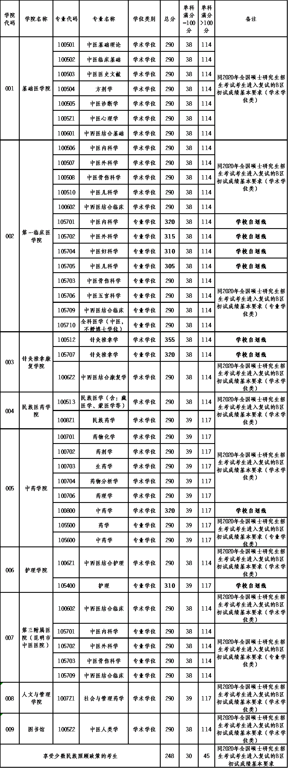 以上就是有關(guān)“2020考研分數(shù)線:云南中醫(yī)藥大學(xué)2020年全國碩士研究生招生考試考生進入復(fù)試初試成績基本要求及復(fù)試相關(guān)工作安排”的全部內(nèi)容了,進入復(fù)試的同學(xué)一定要好好準備,在國家線徘徊的同學(xué)抓緊準備調(diào)劑了!