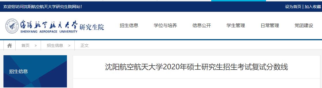 2020考研分數線:沈陽航空航天大學2020年碩士研究生招生考試復試分數線