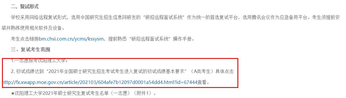 | 沈陽理工大學2020復試分數線 | 2021考研國家線 |