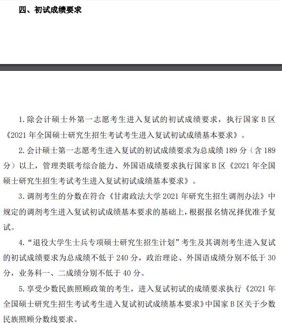 | 甘肅政法大學2020復試分數線 | 2021考研國家線 |