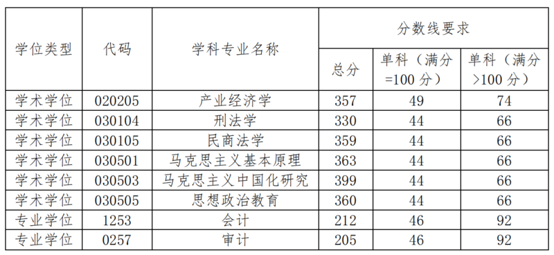 2、接受調劑的學科專業:理論經濟學、應用經濟學(除產業經濟學外)、法學(除民商法、刑法學外)、中國語言文學、信息與通信工程、軟件工程、管理科學與工程、工商管理、設計學學術碩士,金融、應用統計、國際商務、法律、新聞與傳播、電子信息專業碩士初試成績達到教育部公布的2021年研究生復試基本分數線(A類考生)要求。