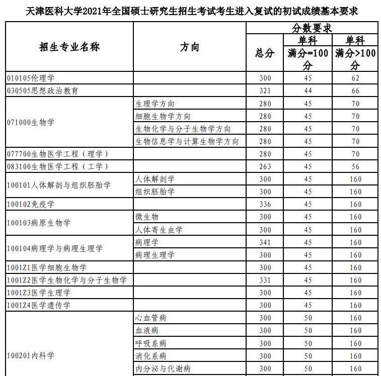 點(diǎn)擊查看:天津醫(yī)科大學(xué)2021年全國碩士研究生招生考試考生進(jìn)入復(fù)試的初試成績基本要求