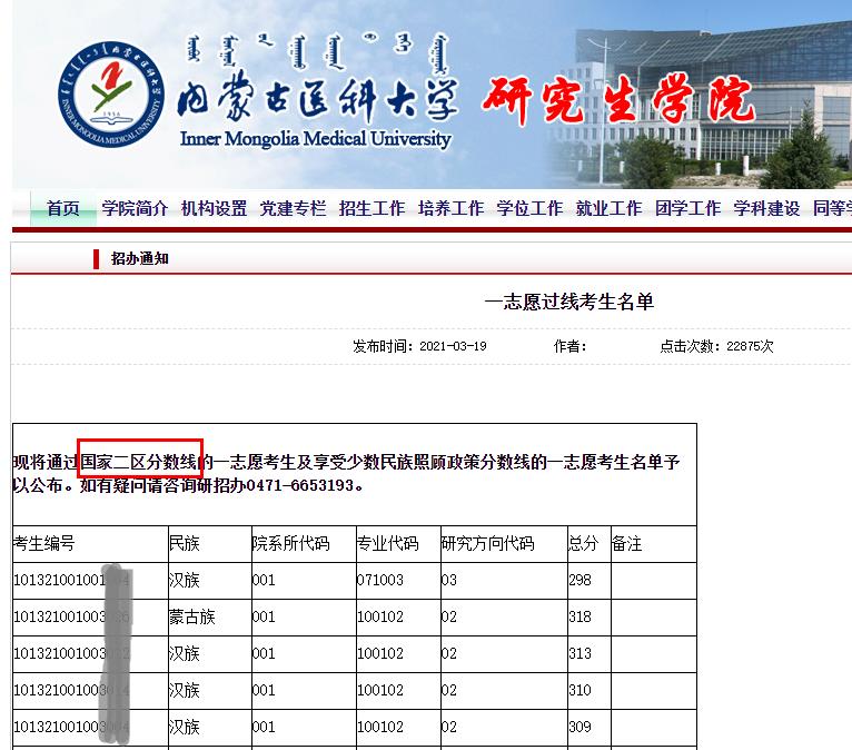 | 內蒙古醫科大學2020復試分數線 | 2021考研國家線 |