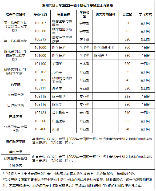 以上就是小編為大家整理“2022考研分數線:溫州醫科大學2022年碩士研究生復試基本分數線”的全部內容,想了解更多相關內容,請持續關注本網站。