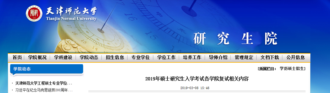 以上就是“天津師范大學2019年碩士研究生入學考試各學院復試相關內容”的全部內容!