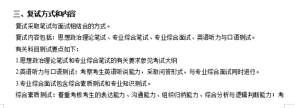 復試內容包括:思想政治理論筆試、專業綜合筆試、專業綜合面試、英語聽力與口語測試。