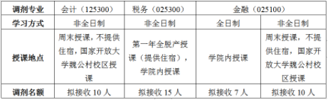 申請調(diào)入稅務(wù)專業(yè)、金融專業(yè)的考生第一志愿報(bào)考專業(yè)須為稅務(wù)(025300)、金融(025100)、應(yīng)用統(tǒng)計(jì)(025200)、國際商務(wù)(025400)、資產(chǎn)評估(025600)或保險(xiǎn)(025500);