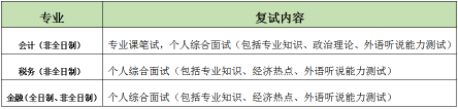 (3)會計(jì)專業(yè)復(fù)試包括專業(yè)能力筆試、個人綜合面試,滿分各為100分,復(fù)試成績滿分為200分,考生總成績=初試總成績/3×50%+復(fù)試成績/2×50%。