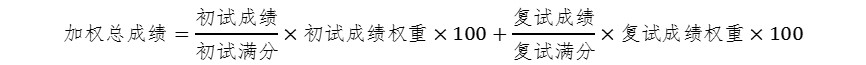 3.對(duì)各項(xiàng)復(fù)試成績(jī)合格的考生,將復(fù)試成績(jī)與初試成績(jī)加權(quán)求和,排列錄取順序。初試成績(jī)權(quán)重為70%,復(fù)試成績(jī)權(quán)重30%。