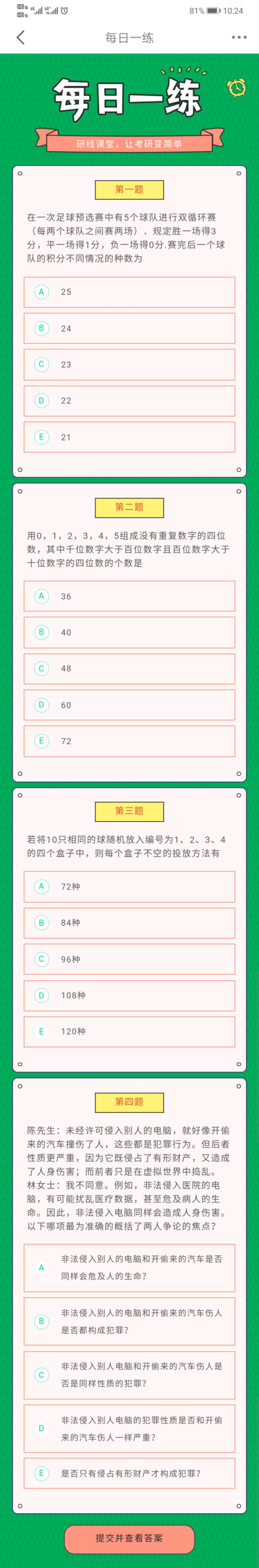 點擊進入:研線課堂萬題庫,每日習題不重復。全面題型任你刷,真題解析隨便看。