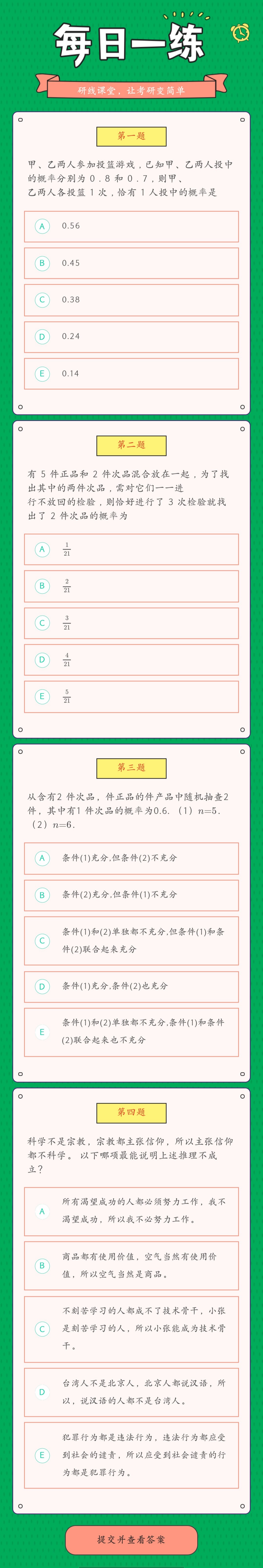 以上就是今日每日一練的全部內容,跟著每日一練,考研輕松復習!更多考試練習,點擊考研每日一練