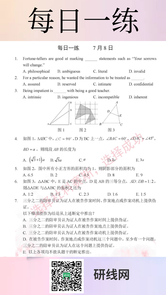 以上就是今日每日一練的全部內(nèi)容,跟著每日一練,考研輕松復(fù)習(xí)!更多考試練習(xí),點(diǎn)擊考研每日一練!