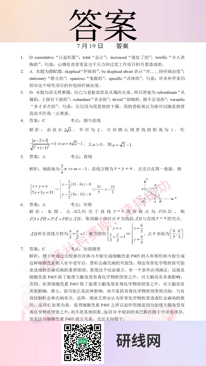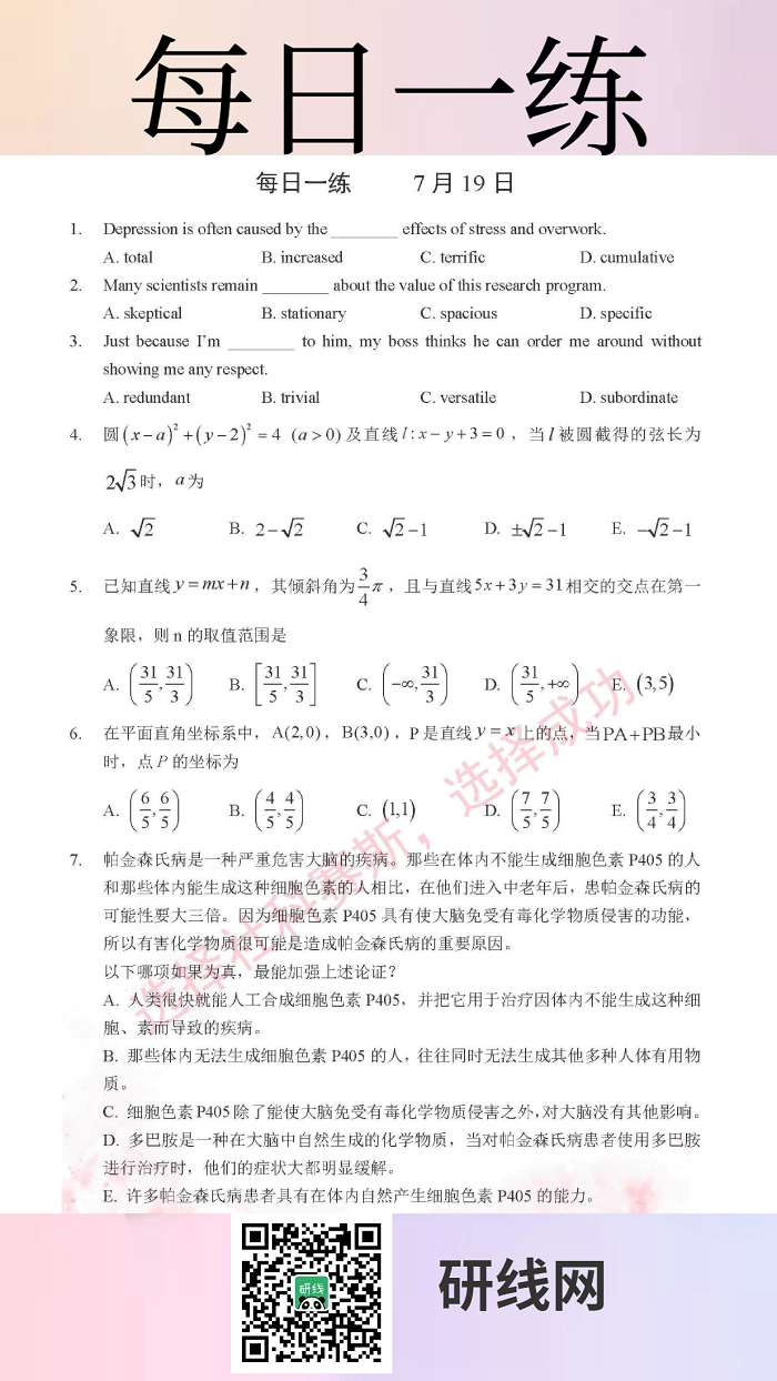 7月19日:2020考研管理類聯考每日一練以及答案