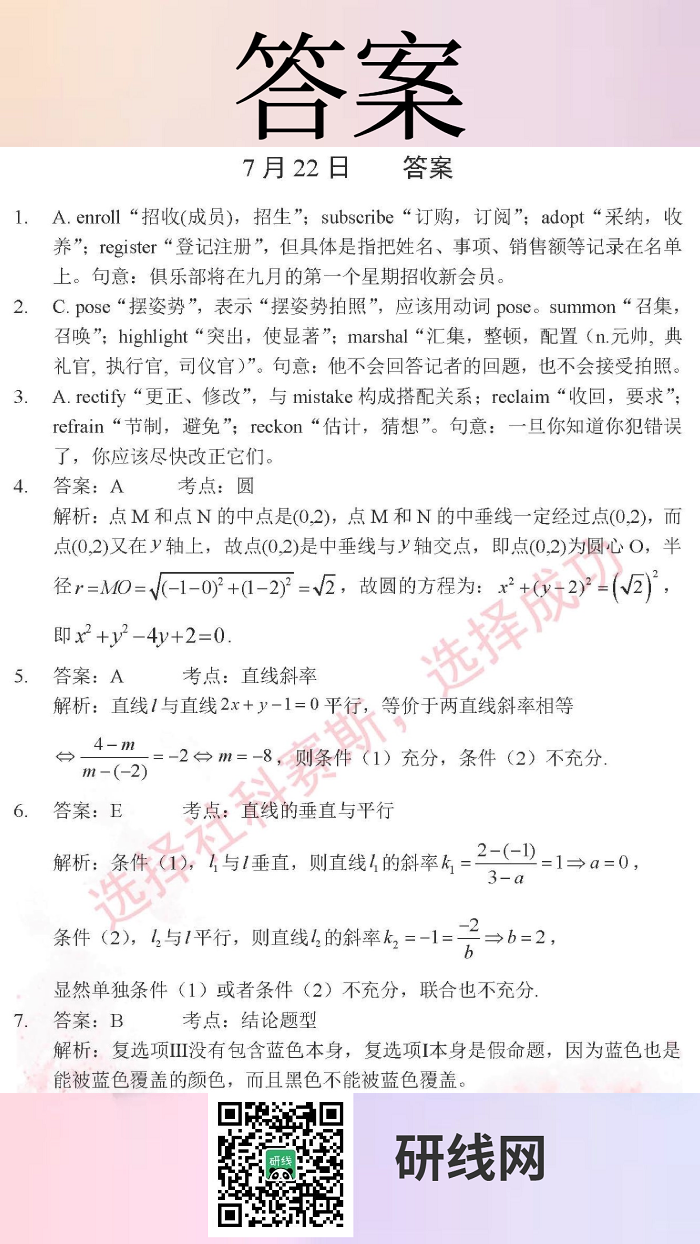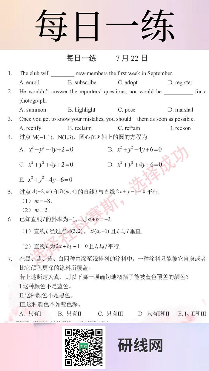為了更好的復習和鞏固已經學過的知識,研線網小編為大家整理出幾道題,作為每日的練習,希望能夠幫助到同學們哦!