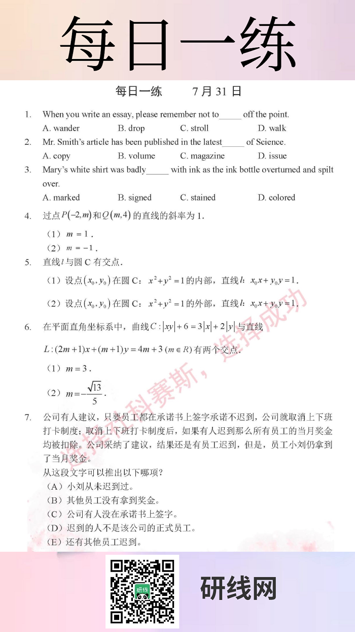 以上就是今日每日一練的全部內(nèi)容,跟著每日一練,考研輕松復(fù)習(xí)!更多考試練習(xí),點擊考研每日一練!