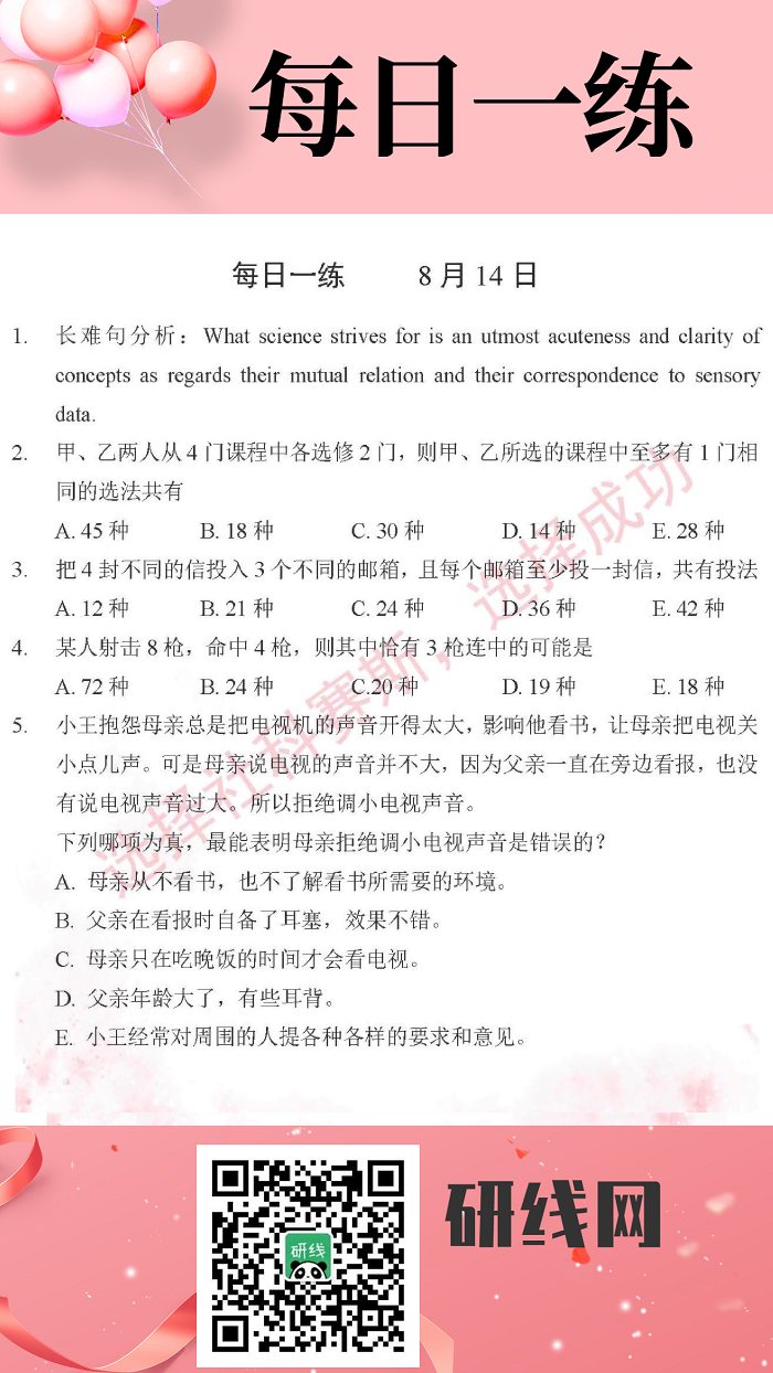 為了更好的復習和鞏固已經學過的知識,研線網小編為大家整理出幾道題,作為每日的練習,希望能夠幫助到同學們哦!