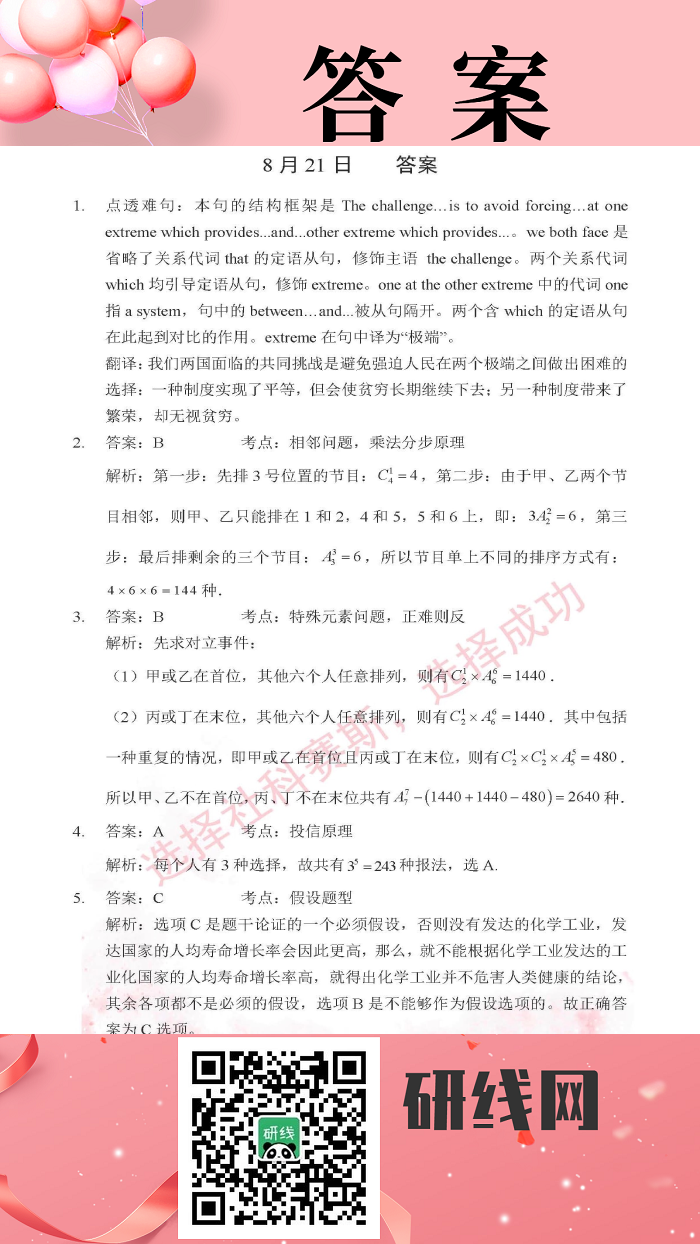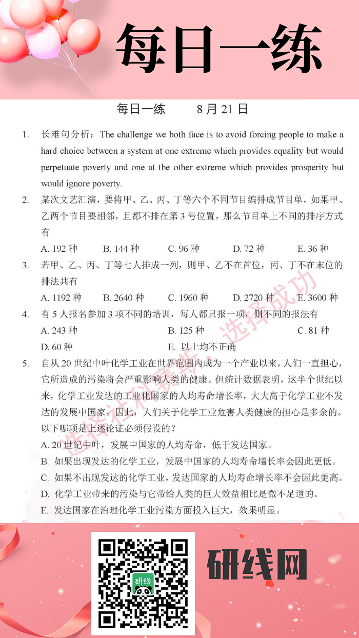 以上就是今日每日一練的全部內容,跟著每日一練,考研輕松復習!更多考試練習,點擊考研每日一練!