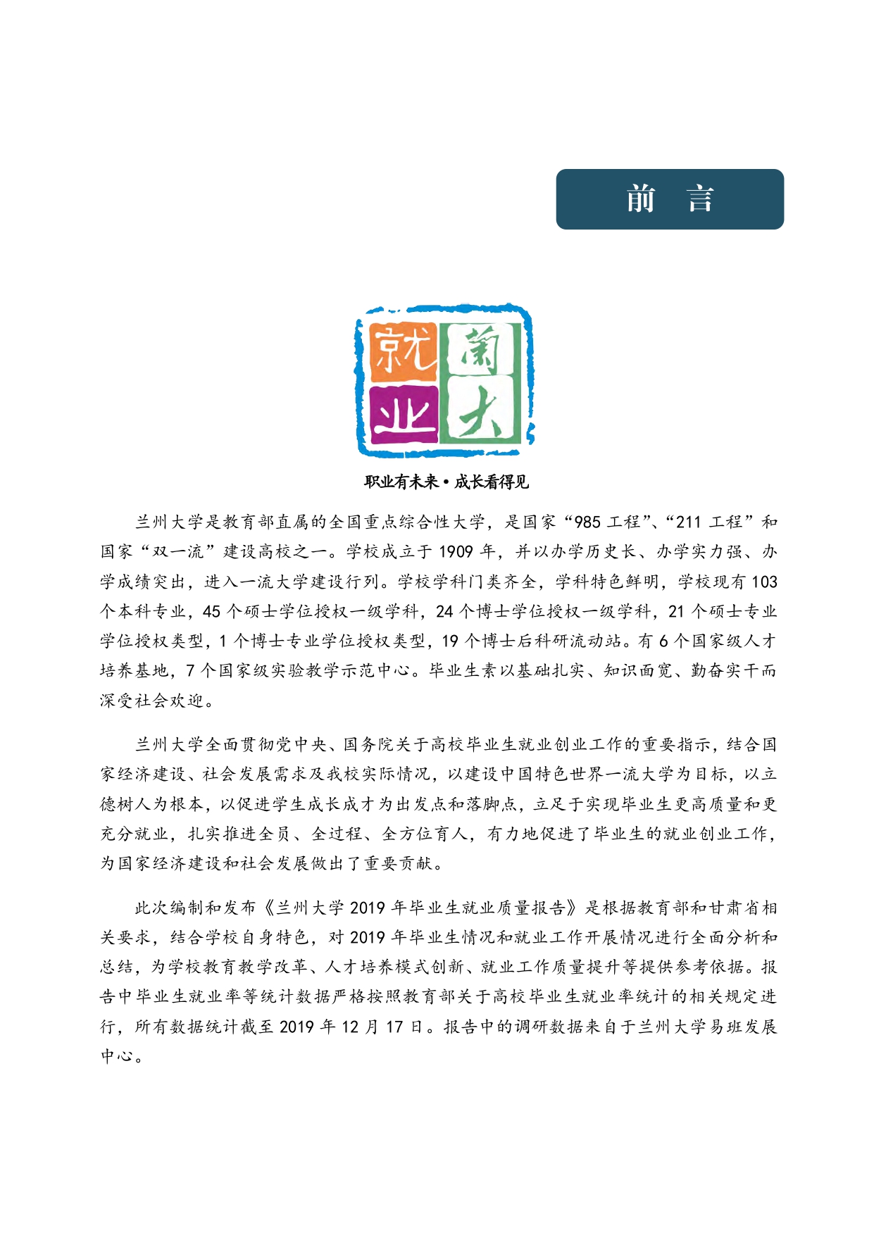 以上就是小編分享“蘭州大學2019屆畢業生就業質量報告”的全部內容,想了解更多相關信息請持續關注研線網。