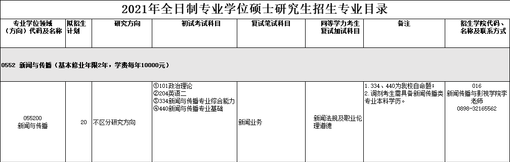 2021考研專業目錄:海南師范大學2021新傳碩士研究生考研專業目錄”的信相關息,希望報考本校的同學們注意查看接收。