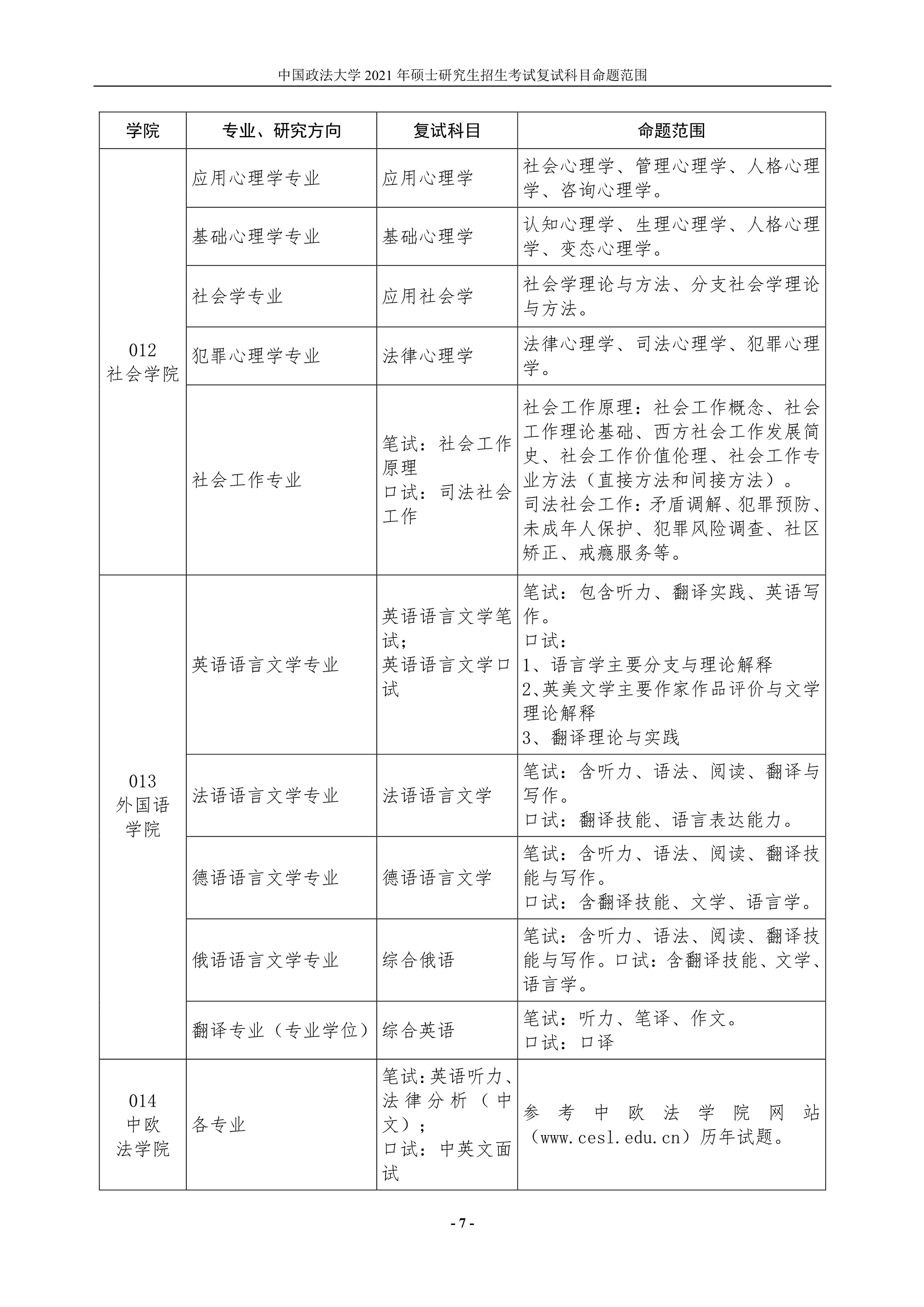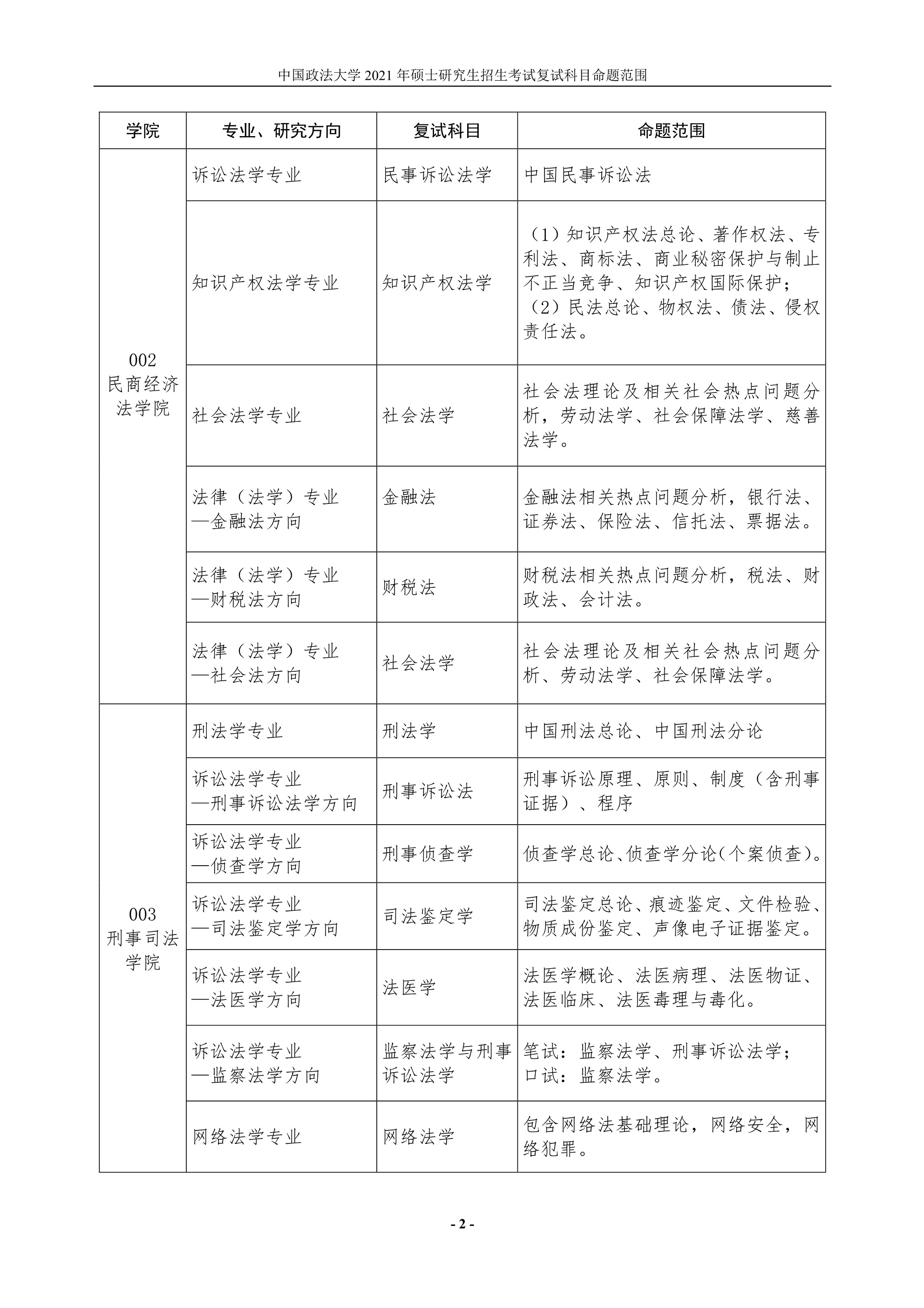 點擊查看:中國政法大學2021年碩士研究生招生考試復試科目命題范圍.pdf