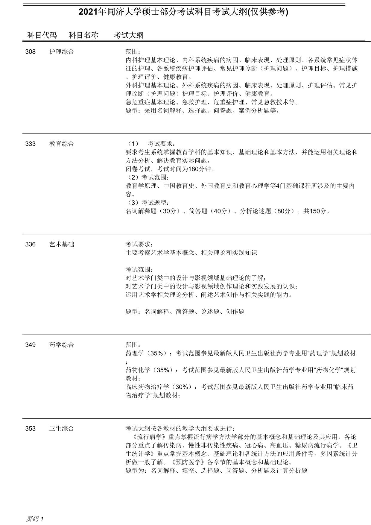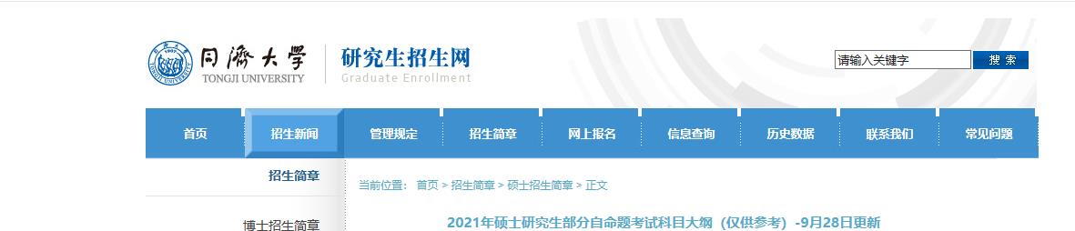 2021考研大綱:同濟大學2021年碩士研究生部分自命題考試科目大綱