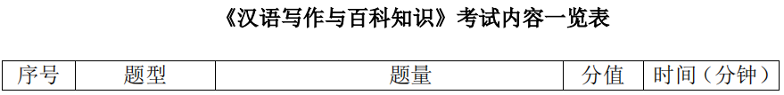 本考試包括三個部分:百科知識、應用文寫作、命題作文。總分 150 分。