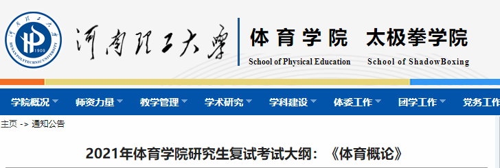 以上就是研線網小編整理“2021考研復試大綱:河南理工大學2021年體育學院研究生復試考試大綱《體育概論》”的全部內容,想了解更多考研復試大綱信息,請持續關注研線網!