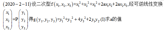 而數學二的試題僅僅是可逆的線性變換,所以僅僅能說明對應矩陣是合同的,即轉化為對應的秩相同,可以解得