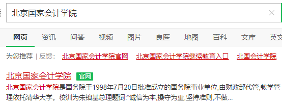 首先,在瀏覽器搜索“北京國家會計學(xué)院”,找到官網(wǎng)。