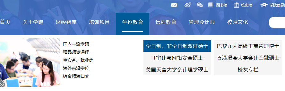 下一步,找到網(wǎng)站中的“學(xué)位教育”欄目。各院校的網(wǎng)站欄目名稱并不是相同的,大家在查找信息的時候要注意仔細(xì)尋找相關(guān)欄目。