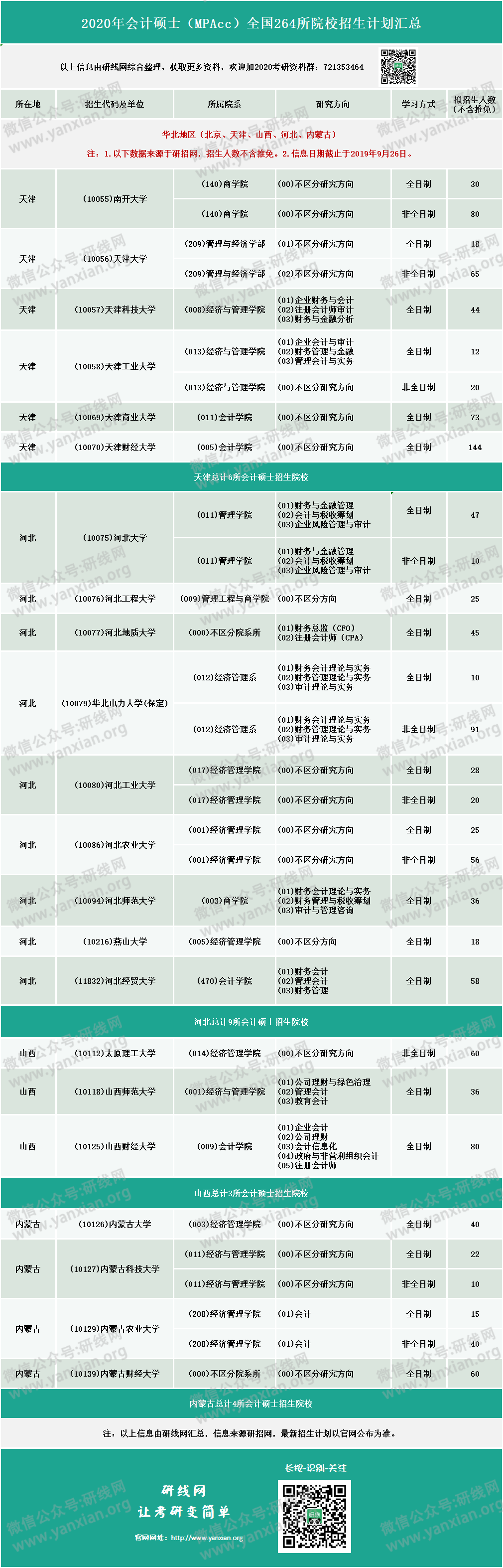 【2020年會計碩士(MPAcc)全國招生信息匯總】(即:華北、華東、華中、華南、東北、西南、西北)連載一!
