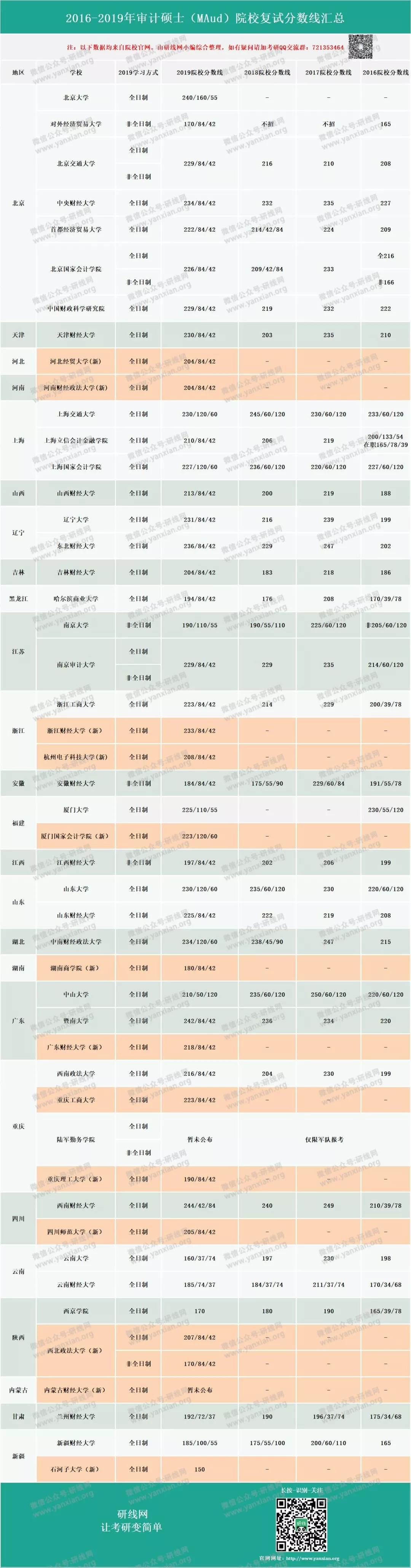 以上就是近三年審計專碩的各院校復試分數線,大家可以根據目前復習情況,對自己有一個衡量。